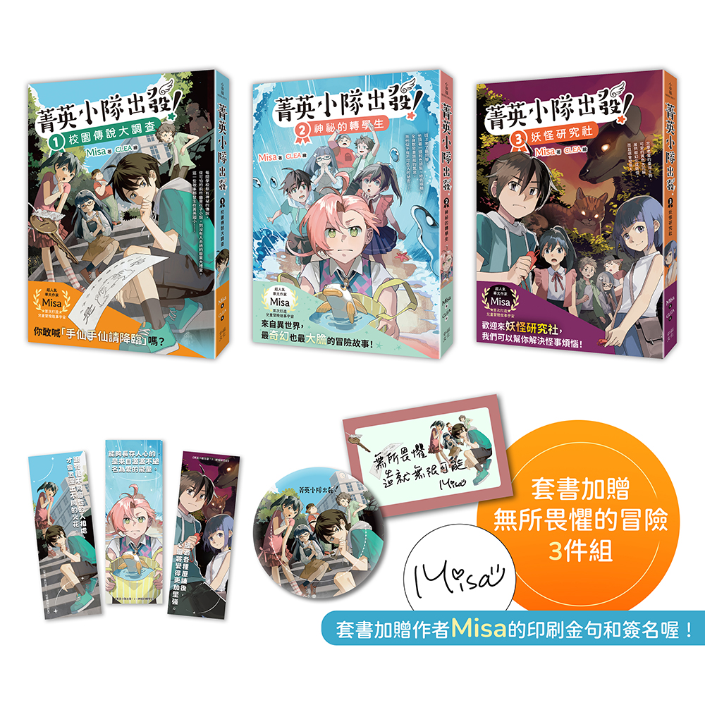 套書超值加贈超人氣作者Misa親簽印刷透卡、勇氣胸章、冒險書籤