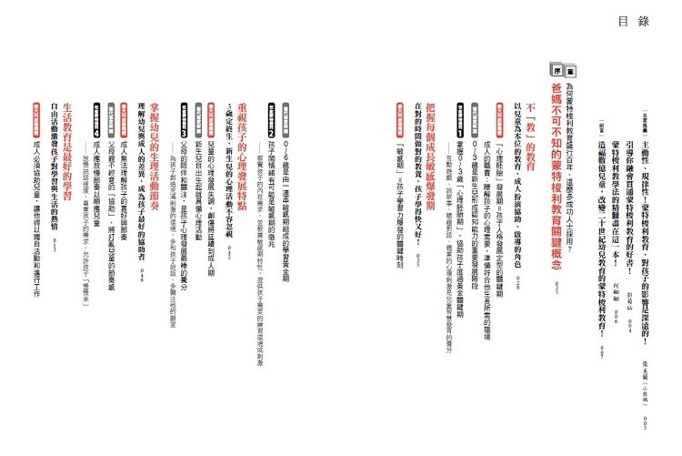 然而,我覺得要正確理解蒙氏理論,確實需一位好的老師做引導。這本書幫父母們把蒙氏的精華論點都篩選出來,而由當代能融會貫通的權威好老師李利做引導、詮釋,並進一步補充相呼應的實踐方法,父母們一次就能讀透數本經典,又不需要出遠門上課,真的是一本好書!我真心推薦給有心自學潛修的父母們!