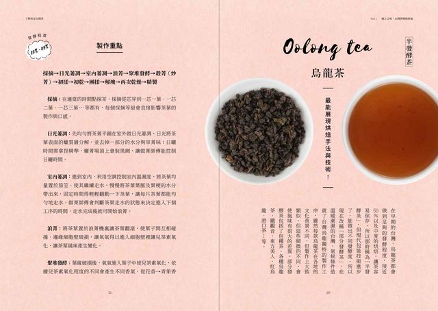 從採茶到製茶完成,至少得經過8道基本程序,需視天候、溫濕度微調狀況製成「毛茶」。除了尋訪現地現製的高山茶,也到低海拔的南投名間看看手工紅茶的製作眉角;此外,台灣百年老茶廠的歷史今昔與製茶方式也細說給你聽。