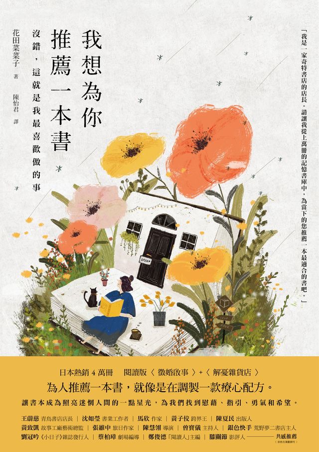 ◎在閱讀本書的過程中,不僅是對書店工作的喜愛、推薦書給陌生人的樂趣,經常發現作者的想法都讓我感同身受。菜菜子坦率地寫下自己的脆弱和挫折,儘管跌跌撞撞,最終仍能找到屬於自己的幸福。——書業工作者 沈如瑩