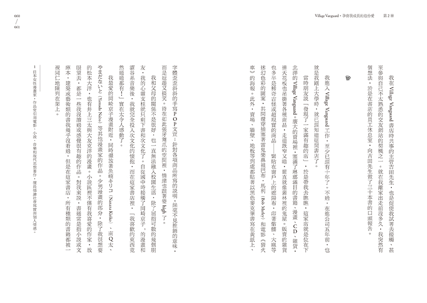 「這也是我為何無法勇敢提出辭呈的原因……離開了公司、離開了這群人,我不知道哪裡還有自己的容身之處?不論是工作或人,Village Vanguard都與我非常契合,甚至可以說合而為一了。那是我人生中最美好的部分,只是我漸漸覺得,這種關係似乎無法長久了。離開這個工作後,我還能再找到這麼有趣的事情做嗎……我越想越覺得不可能……」