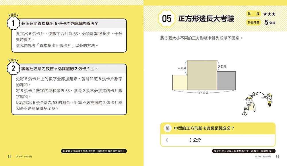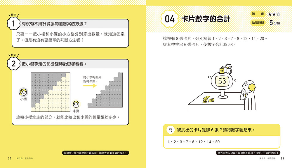 這也正是本書要傳遞的精神:重點不在「答對」或「沒答對」,而是在於思考的過程。要經歷這些過程,「靠自己思考」是不可或缺的條件。唯有動腦思索後終於想通而豁然開朗,才能獲得「樂趣」、建立「興趣」,並且內化為自己真正的能力。