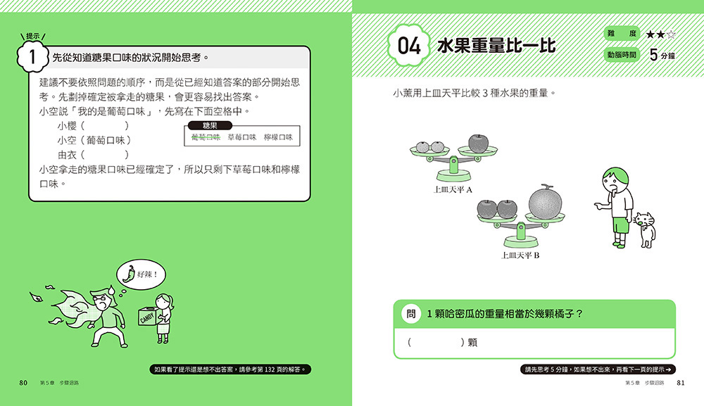 特色2. 超強邏輯思維訓練:每題只有5分鐘解題時間,題目後皆有解題的邏輯思維關鍵提示,適時幫助孩子打通思考盲點,享受動腦思索後豁然開朗的成就感!