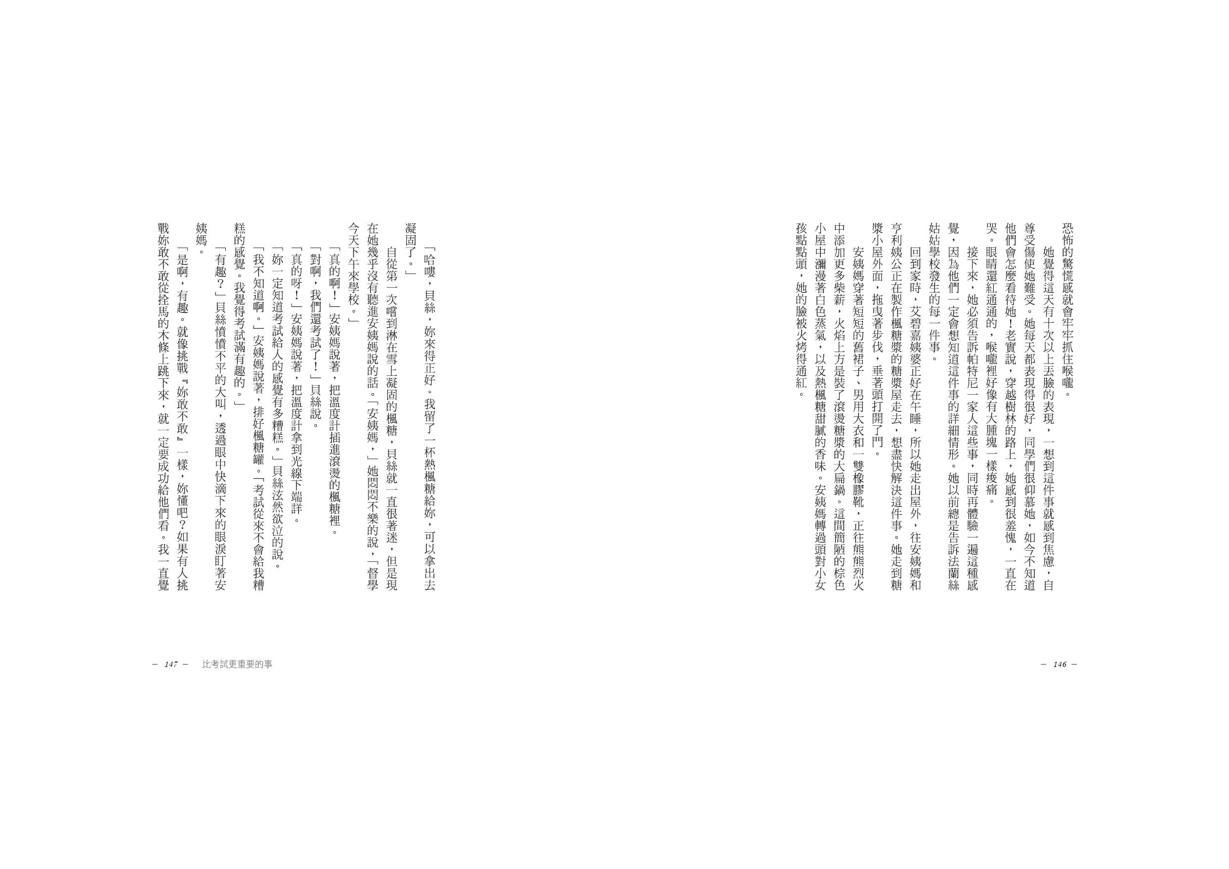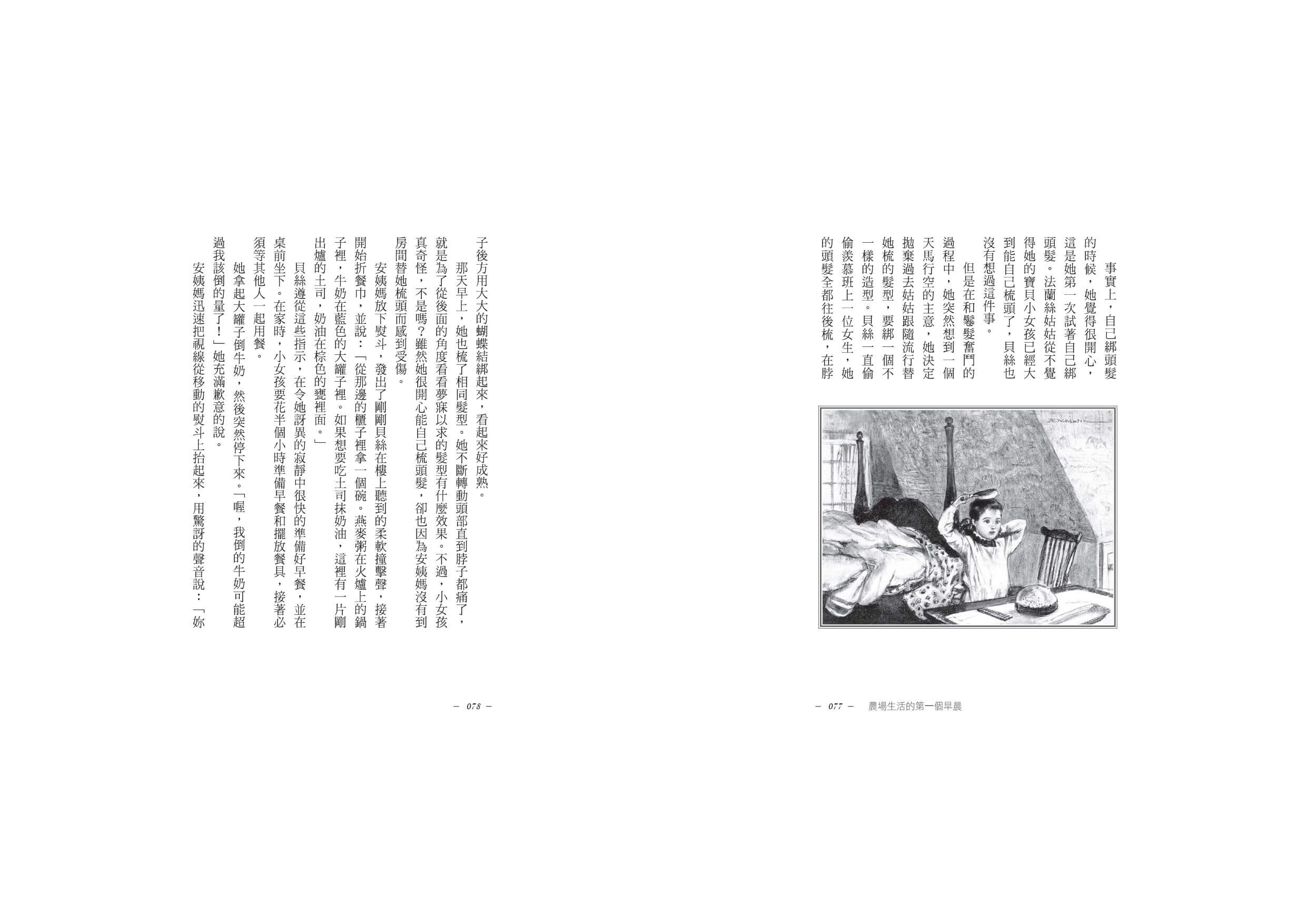 其實整部小說中最讓我驚豔的還有貝絲對法蘭絲姑姑的態度,在她成長轉變之後回頭再看,就算了解到法蘭絲姑姑的不完美,但仍能保有柔軟的心,就算貝絲非常喜愛在農場的日子,也很想繼續待下去,但知道姑姑要接她回去時,心中雖難受卻體貼的想著「絕對不能讓法蘭絲姑姑傷心,她親愛的、溫柔的、甜美的法蘭絲姑姑那麼容易受傷,為貝絲付出了好多好多年的時間,一直緊張的照顧著她」。
