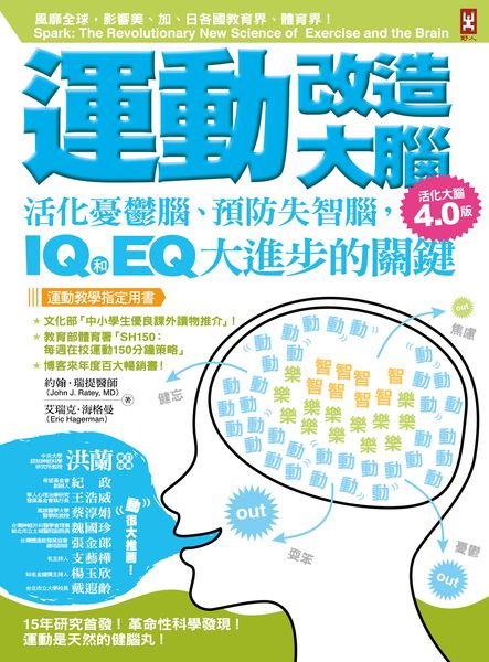 - 我投入體適能教學逾十年,閱讀無數運動相關書籍及研究報告,大多著墨於運動引起的生理變化與促進之身心健康,本書是唯一針對運動能夠提升智商並改善情緒之完整研究報告!──張金郎,台灣體適能發展協會總培訓師