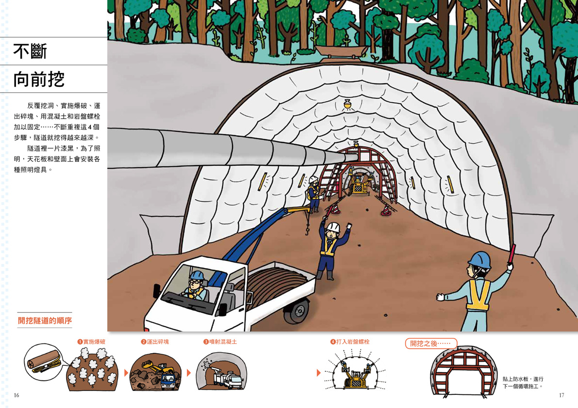翻開這本書,可以了解每項建設都必須經過多道施工,運用許多重型機械,加上大量人力的參與,才能建造完成。