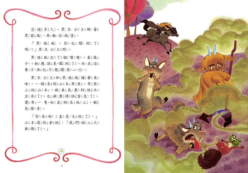 和噴嚏草公主一起吃早午餐一定會有:塗滿奶油的鬆軟麵包,包裹融化起司的煎蛋捲,灑滿糖霜的甜甜圈。 肚子超餓的酷麻花想趕快享用美食,偏偏怪獸鈴聲來搗亂! 當黑衣公主跟黑旋風趕到山羊草原時,只看見草原上有一大群可愛的小兔子。 咦?怪獸呢?