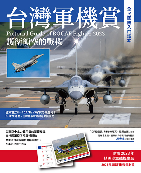 製作豐富內容的圖文之外,隨書王紹翔所拍攝的各型戰機精美圖片,搭配F-16及F-5的關鍵紀念日期,你可以擁有一個與眾不同的2023年桌曆。
