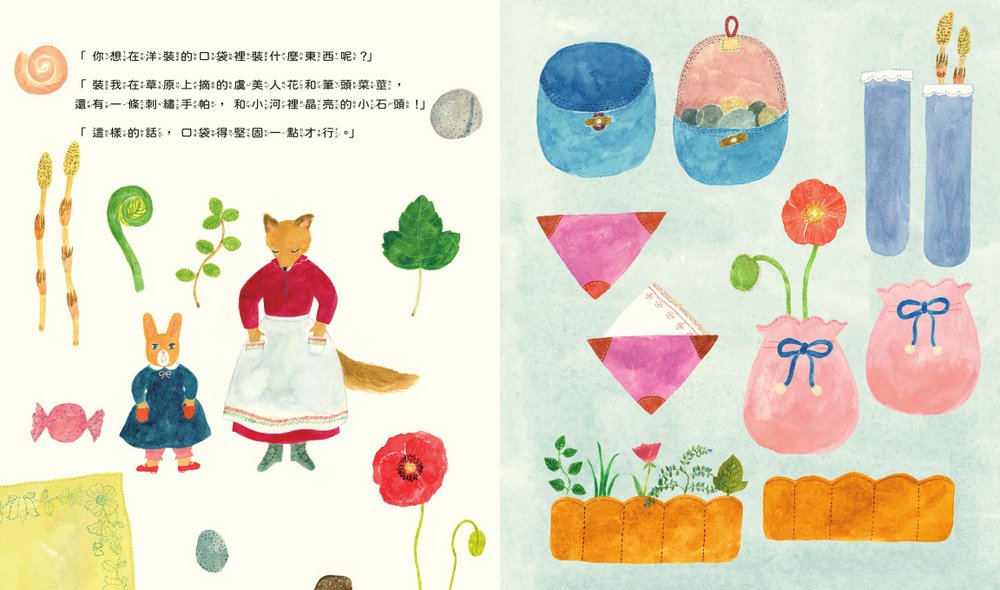 書中運用了大量春天的顏色,讓大人也充滿視覺享受。如果把它做為禮物送給做裁縫的人,我想他們也會很開心。