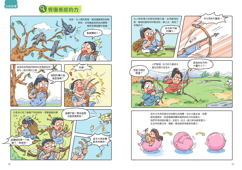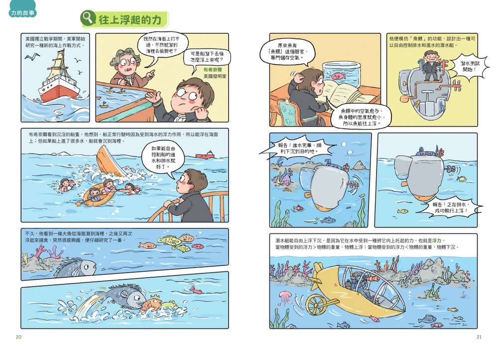 奇思妙想的場面過後,接著以連環漫畫介紹相關的科學故事與生活應用,讓孩子了解,物理是我們身邊無所不在的現象。