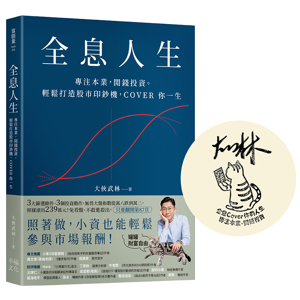 大俠繼暢銷書《股息Cover我每一天》舉兆豐金為例來分享存股心法與操作後,第二本《全息人生》跳脫個股,著重於闡述資金如何分批投入的操作細節,進而發展出一套可以用於任何績優個股、ETF的投資方式。