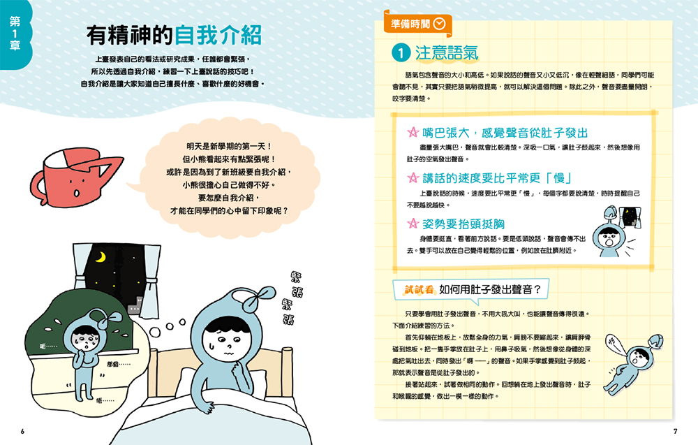 角色可愛加上大量圖解,讀起來一點也不說教,重點是提供許多好方法來克服上臺的恐懼,告訴孩子:只要好好準備,上臺一點也不難!──仲惠(書店店員)