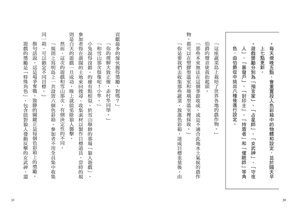 這系列光是書名就令人心生畏懼,沒想到在可愛的插圖中,竟是驚悚又燒腦的狼人遊戲劇情,遊戲規則是要在限定的時間中,猜出狼人是誰,猜錯的話……後果不堪設想!