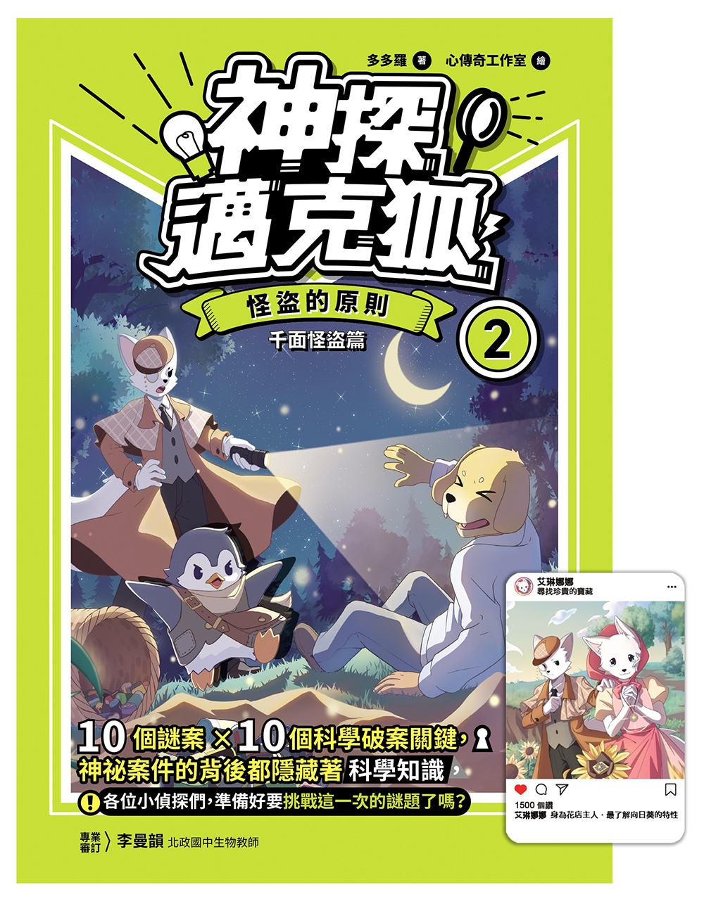 ✦科學小站:每個案件背後都隱藏著科學原理和科普知識,包含了物理、化學、生物等六大學科知識。本書內容有:變色龍的變身術、杜鵑鳥怎麼孵蛋、枯葉蝶的偽裝、建築師園丁鳥、鳥寶寶的銘印行為、潮汐現象、放大鏡為什麼能點火呢、北極星……。