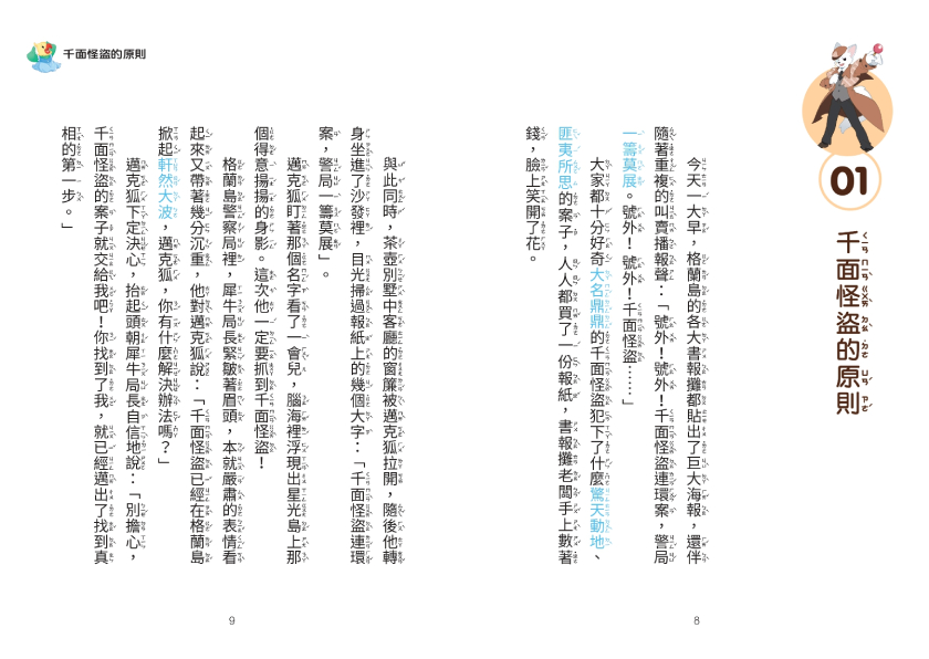 報紙上刊出署名千面怪盜的連續失竊案,讓格蘭島的動物人心惶惶,各式寶物紛紛失蹤。