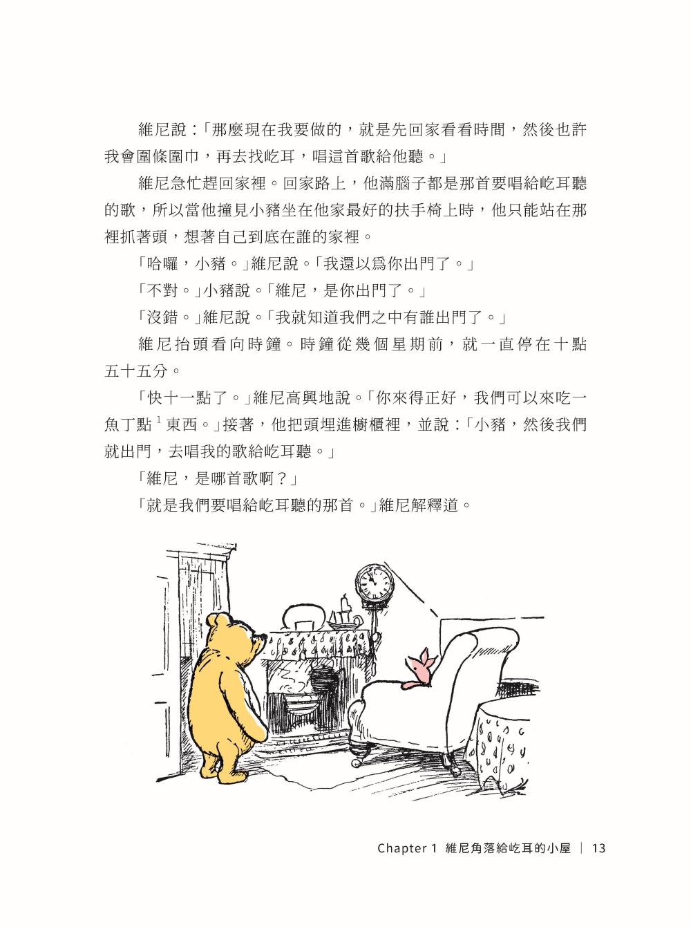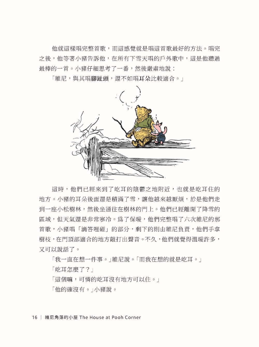 「喔!」維尼說。他努力讓自己聽起來難過又惋惜,接著他說:「我以為他們什麼都喜歡。」