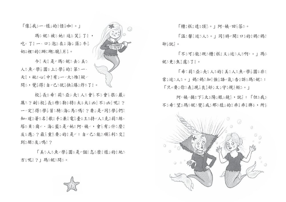瑪妮.海藍對她在美人魚學園的第一天擔心不已。萬一她交不到朋友怎麼辦?或是不得不騎她最害怕的海馬?更可怕的是,要是老師和同學們發現她的阿姨正是著名歌手和電臺主持人,同時也是學園史上最頑皮的美人魚——克莉絲塔貝爾,又該怎麼辦?