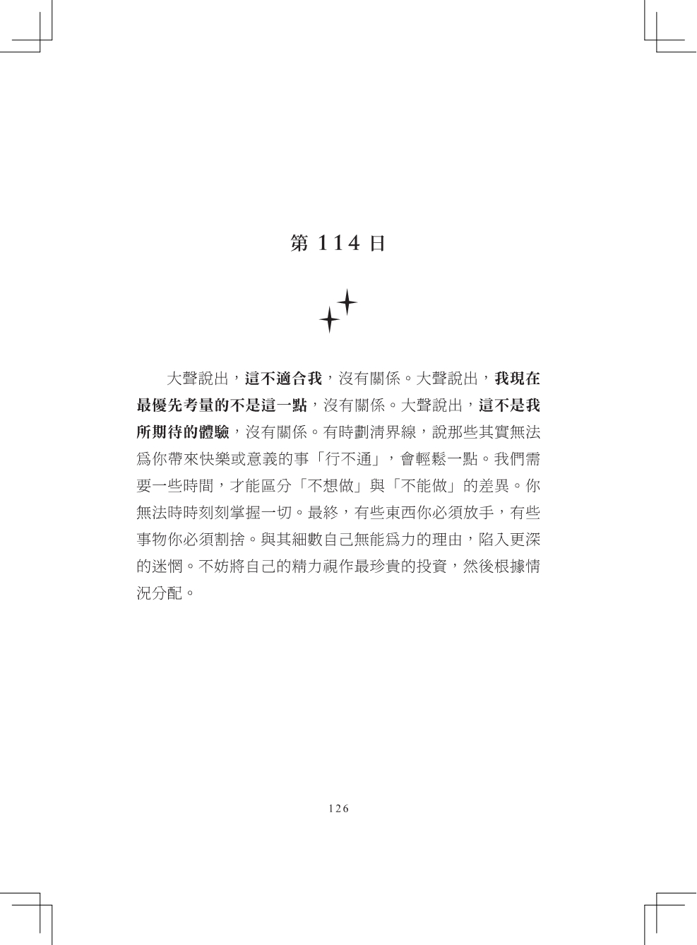 ★全書365篇,一天一篇,無時效,不分季節。每天翻閱,帶你勇敢告別消耗自己的人事物,轉向讓身心飽含能量的選擇。
