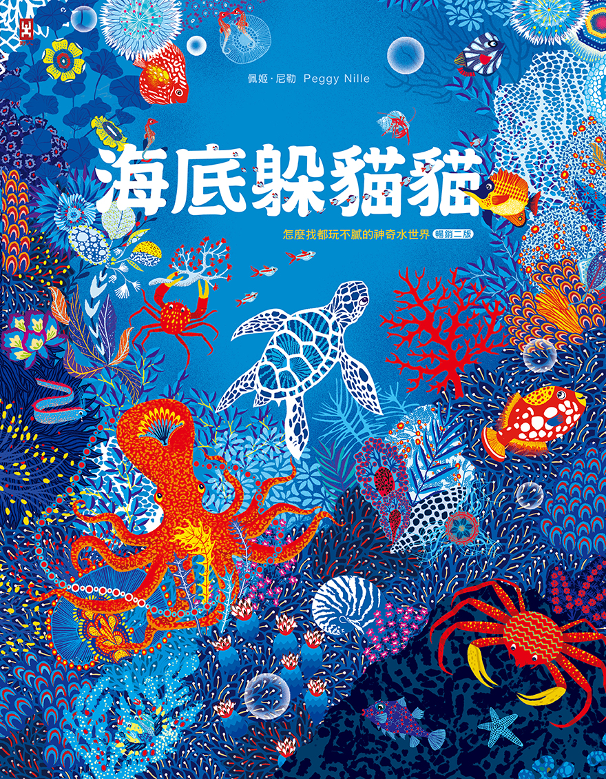 每隻海洋生物都找到創意十足的隱藏地點:海馬小情侶躲在珊瑚後面親親、搭在海豚背上的水母仙女……,不只如此,牠們還找來了許多顏色相近的朋友一起躲貓貓,幫忙分散視線,務必把你耍得團團轉!