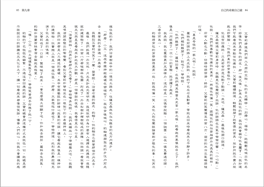 「我最近寄出了一份最新手稿給幾位文學經紀人。」我說,珍妮還沒回應我時,我輕咬著嘴唇。「距離我寄出的前幾封電子郵件,不過也才隔了一星期。」我擦了擦脖子後面的汗水。我正沿著伯爵宮路步行,努力穿越路上的車流。我的背包有千斤重,但圖書館正舉辦一個促銷活動,我對此毫無抵抗力。我買了七本阿嘉莎‧克莉絲蒂精裝書,是用來研究的,這很合理。「不過我已經開始覺得我寫的書其實糟透了。」