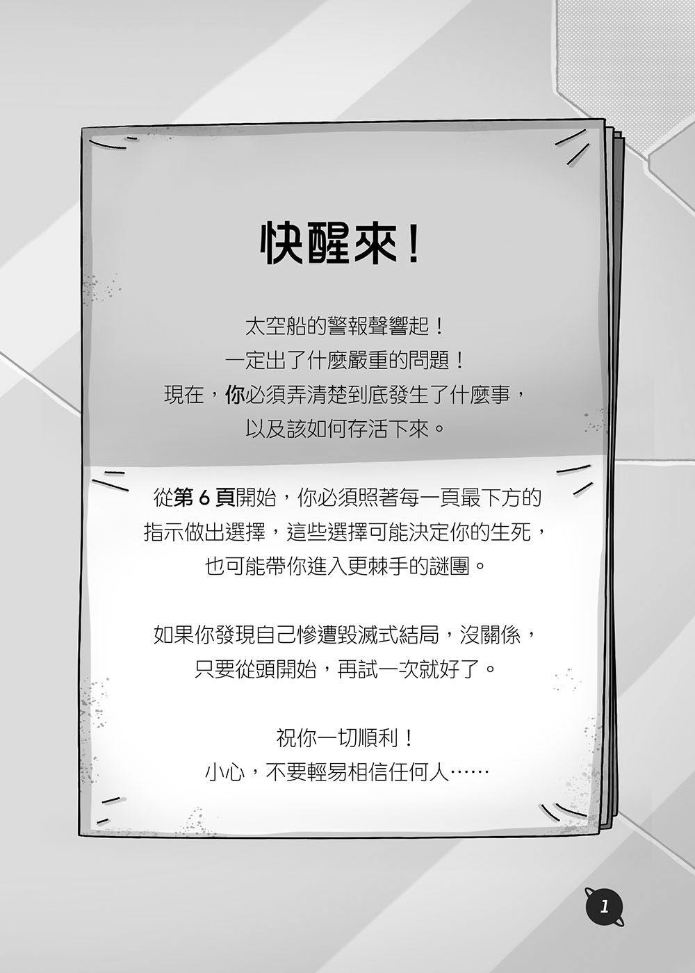 從第6頁開始,你必須照著每一頁最下方的指示做出選擇,這些選擇可能決定你的生死,也可能帶你進入更棘手的謎團。