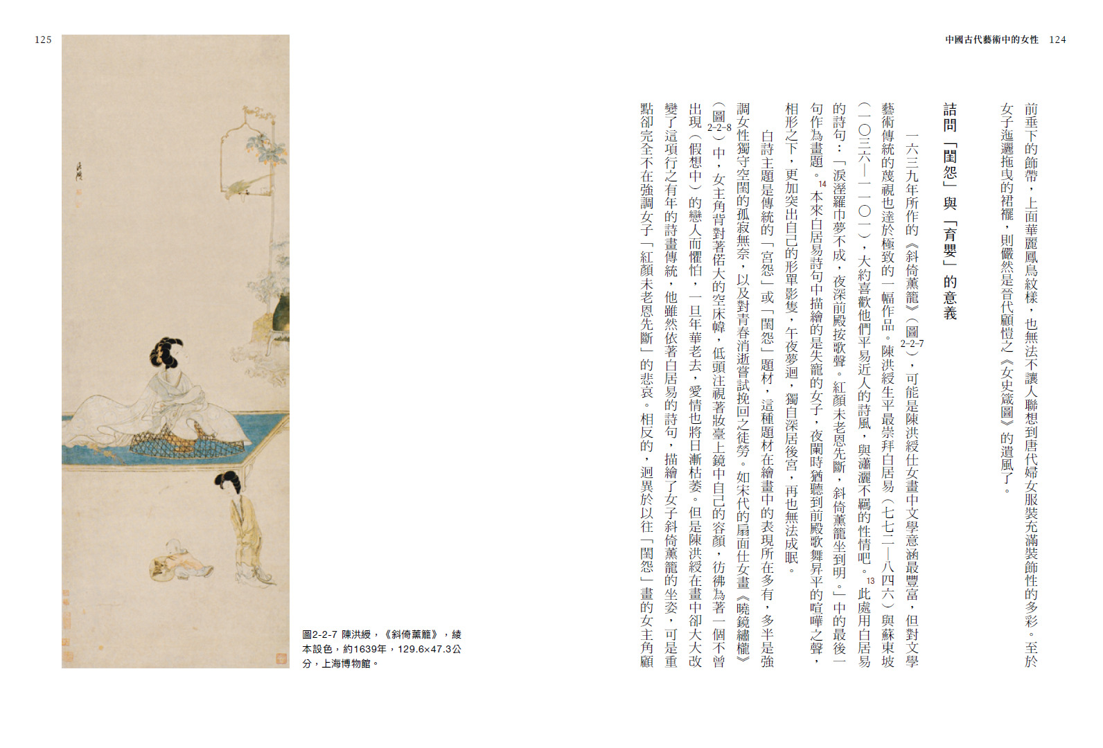 筆者曾在大學開設「性別研究與傳統中國藝術」的課程,除了以西方漢學界已經開拓的對傳統中國女性的研究為基礎外,也結合歷代的藝術史發展,希望能為藝術史的研究,在傳統的角度之外,開啟一扇新的視窗。