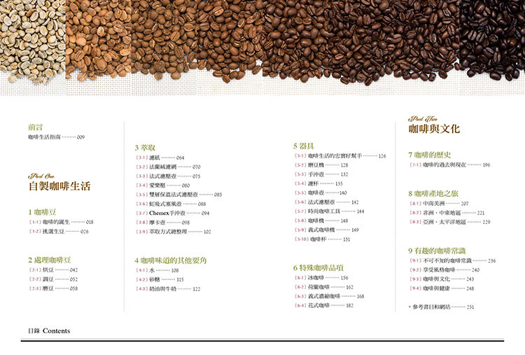 ◆從讓炎炎夏日涼爽起來的冰咖啡到用冷水泡出柔和風味的荷蘭咖啡,從義式濃縮咖啡到用奶泡拉花來設計咖啡,介紹豐富多元且新穎的咖啡品項和咖啡世界。