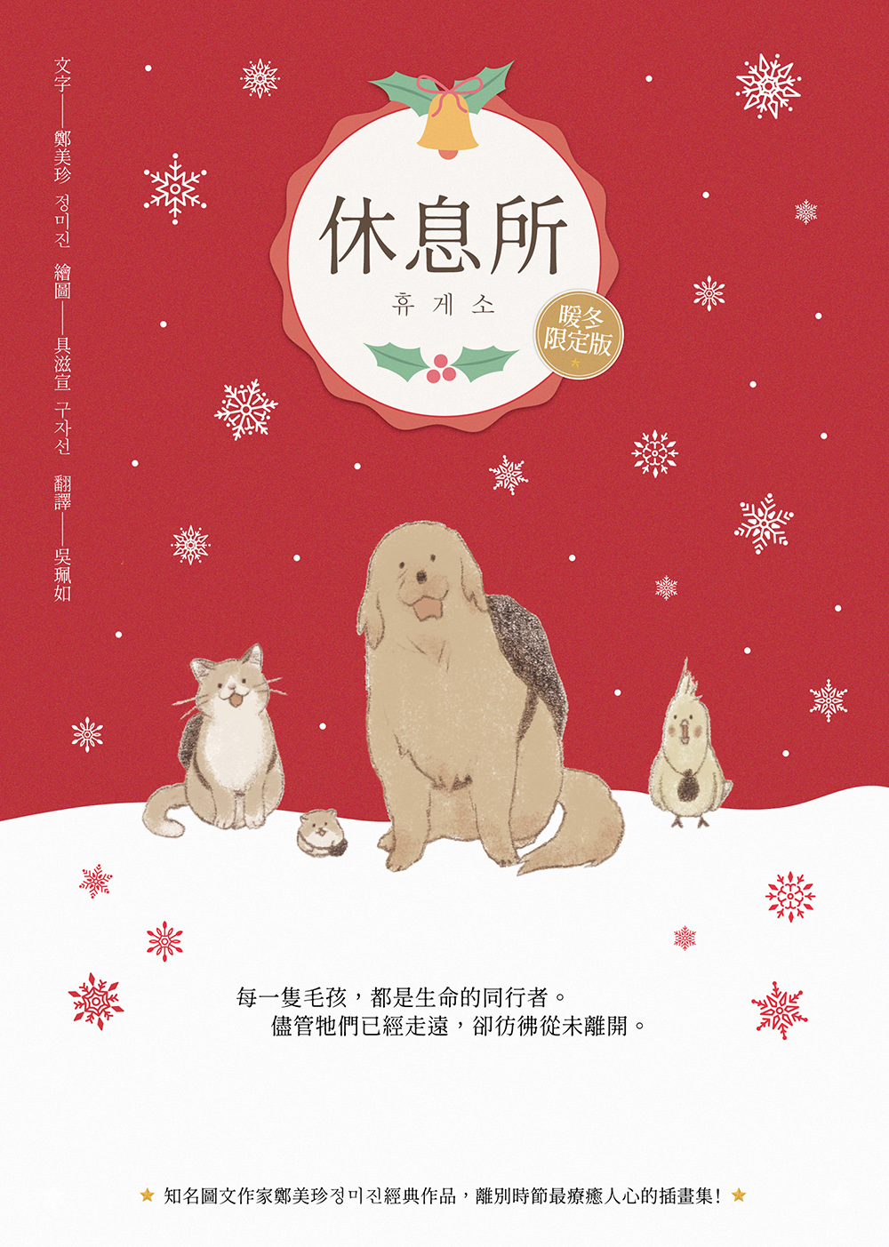 《休息所》這本精緻短小、調色淡雅的韓國圖文繪本,以寵物的視角重新審視與人的關係和相處時光,是一封獻給所有伴侶動物的溫暖情書,同時也將成為沉浸在思念與悲傷的人們最體貼的陪伴之書。