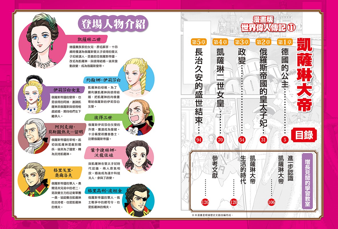 閱讀凱薩琳大帝的故事,可以啟發孩子們勤奮好學、堅毅不拔、勇敢面對困境、善於改革創新、以智慧承擔責任的學習典範。