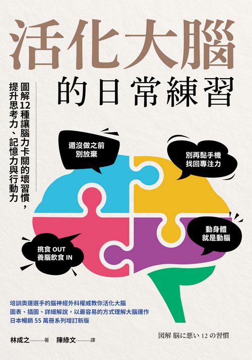 日本腦科學權威林成之醫師以多年救治重症患者、研究大腦的第一線經驗,提出一套讓大腦輕鬆發揮更多潛力的好方法。藉由淺顯易懂的文字和生動活潑的插圖,教我們改掉消耗腦力的12種壞習慣,培養提升腦力的12種觀念,讓大腦越用越聰明、越活越有力!