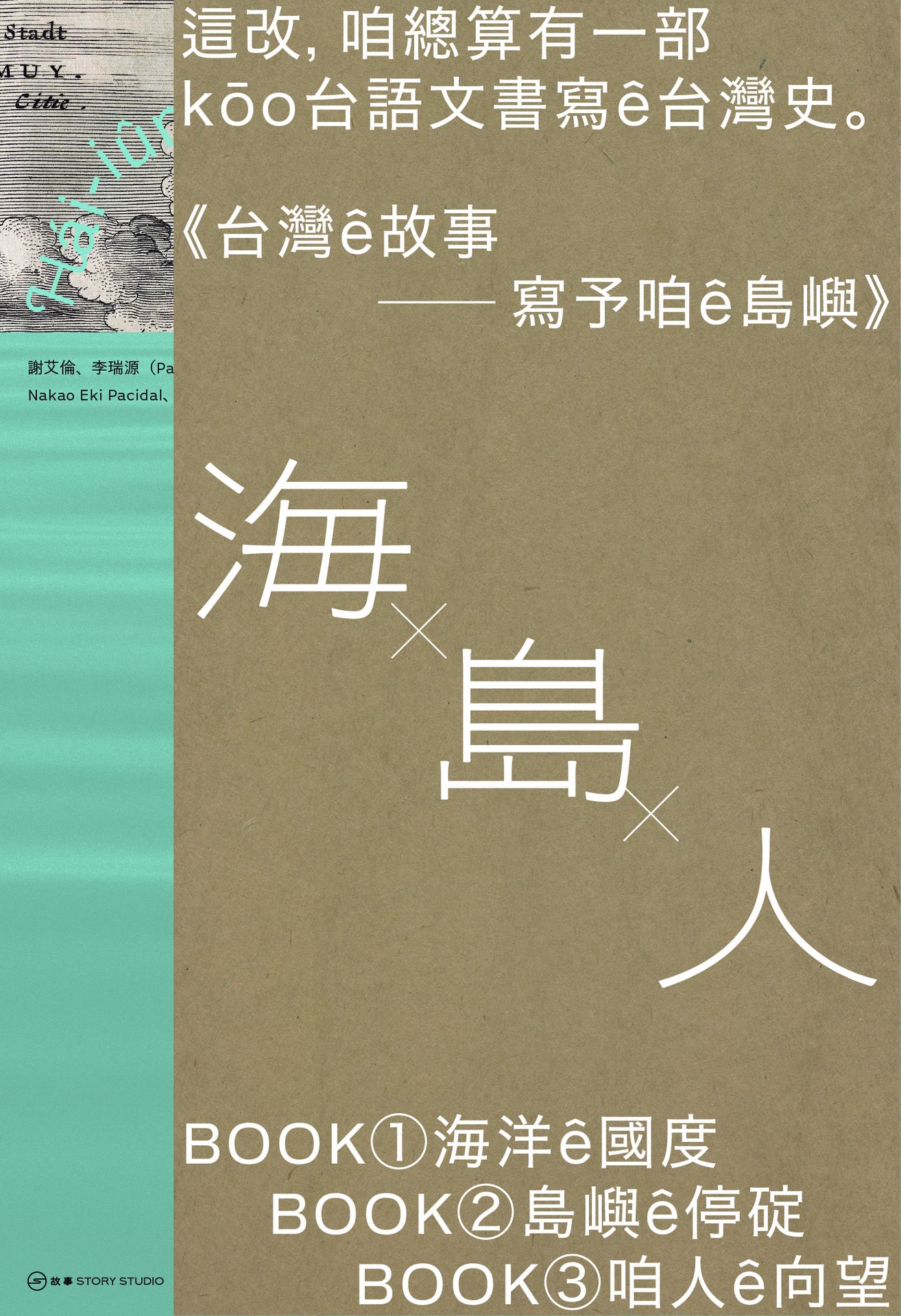 Uì海洋來,tī島嶼蹛,做人群ê歷史。這套《台灣ê故事──寫予咱ê島嶼》三部曲,掠「海・島・人」做線頭,欲tshuā讀者閣一擺來讀台灣這塊土地ê歷史。