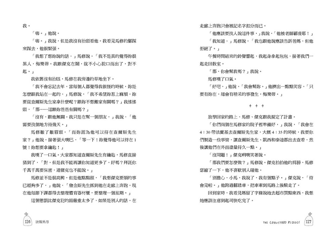 但是,梅樂蒂最要好的朋友──「金魚男孩」馬修,還有常常欺負梅樂蒂的傑克,都不相信海爾!為了找到答案,他們決定調查海爾,究竟間諜男孩與墓園裡,隱藏著什麼不為人知的祕密呢?