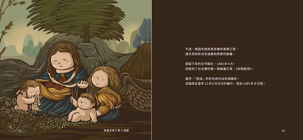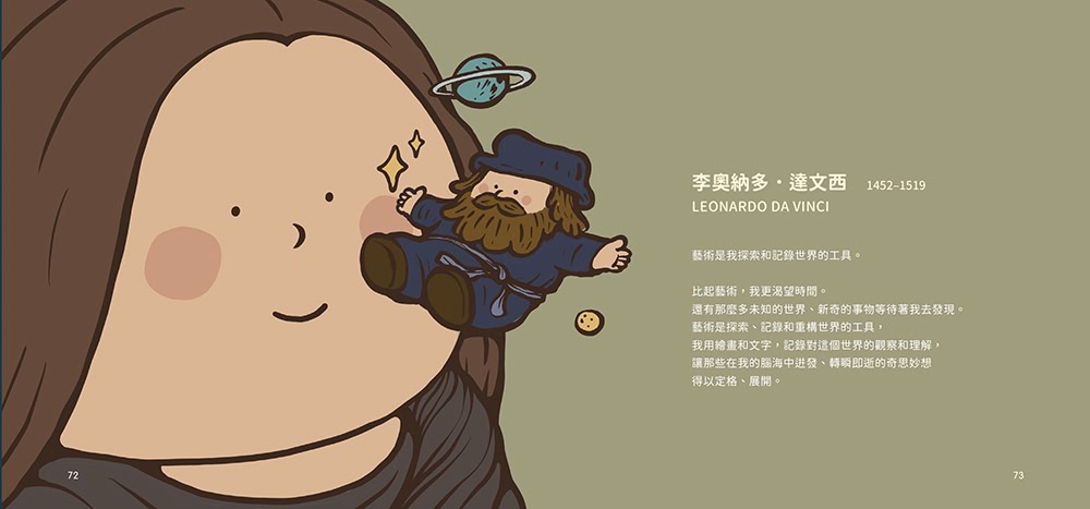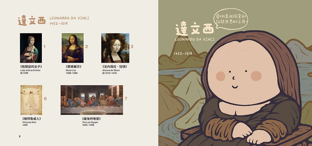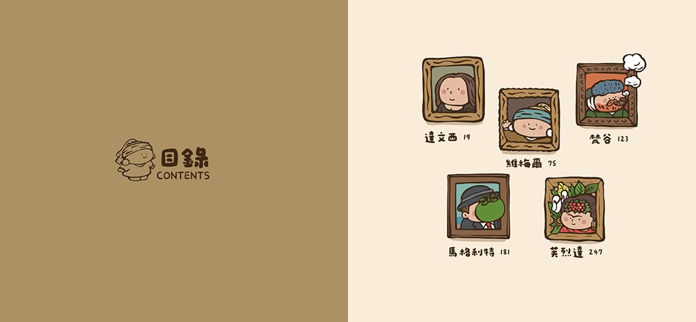 (5)可愛力量大!!!!!插畫家「大橘子」賦予五位藝術大師圓潤Q萌的造型,還以相同風格「仿作」大師們的眾多畫作,使得這本書更加令人愛不釋手!