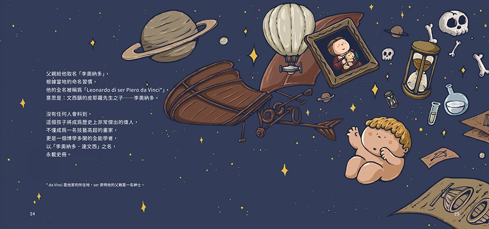 本書收錄了達文西、維梅爾、梵谷、馬格利特、芙烈達這五位畫風與個性都獨樹一幟的藝術巨匠,以每人大約五十頁的篇幅,介紹他們的成長背景、性格特色、趣味軼事、乃至生涯轉捩點等,並藉由對照作品縮圖,闡述創作理念與作品特色,帶你一窺他們不為人知的一面。