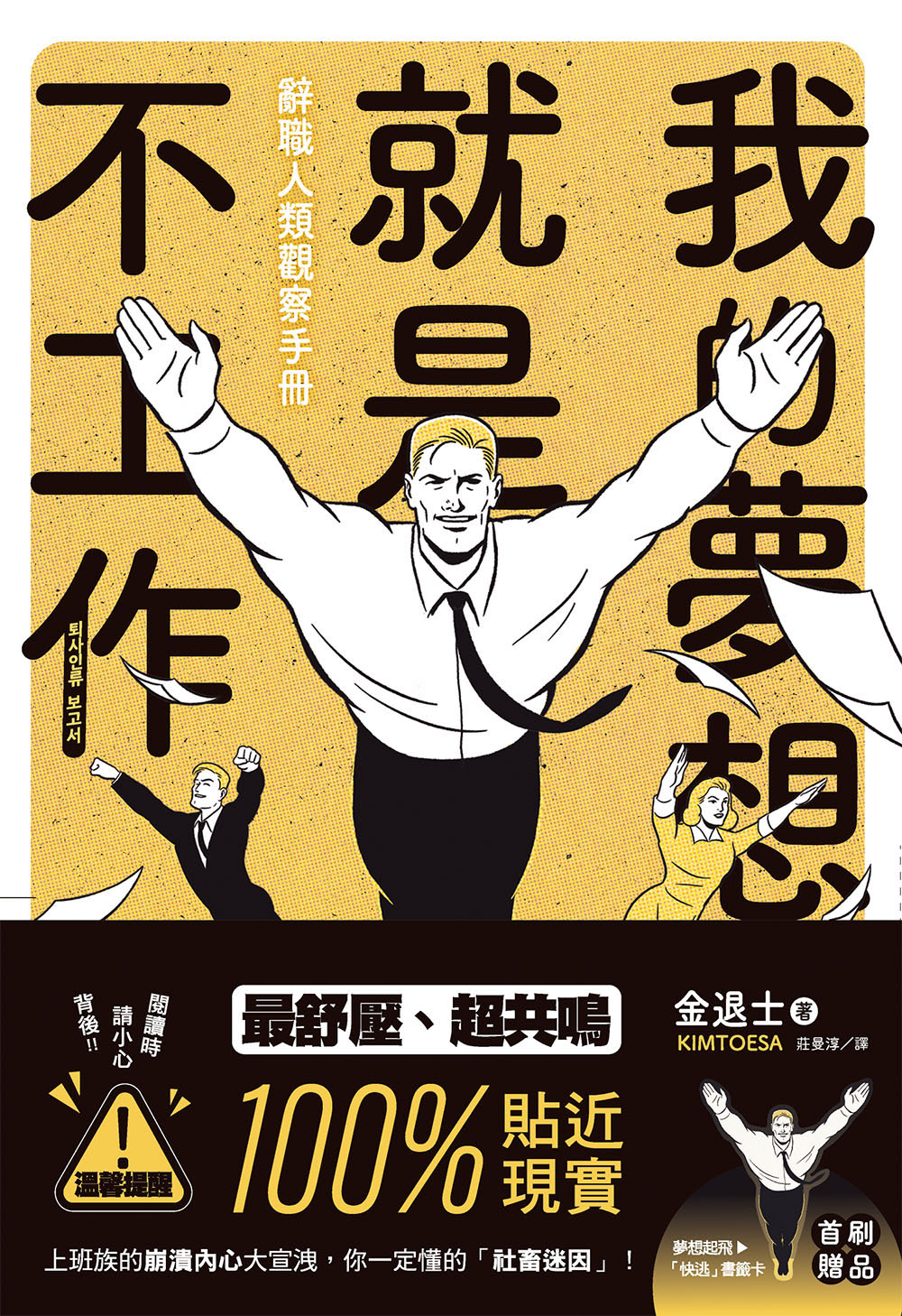 職場打滾N年,經驗豐富的作者「金退士」,以幽默風趣的筆觸繪製的《我的夢想就是不工作:辭職人類觀察手冊》,是給深陷職場、為了生存仍在苦苦打拚的你,一本共鳴舒壓、宣洩崩潰的辦公室好夥伴。