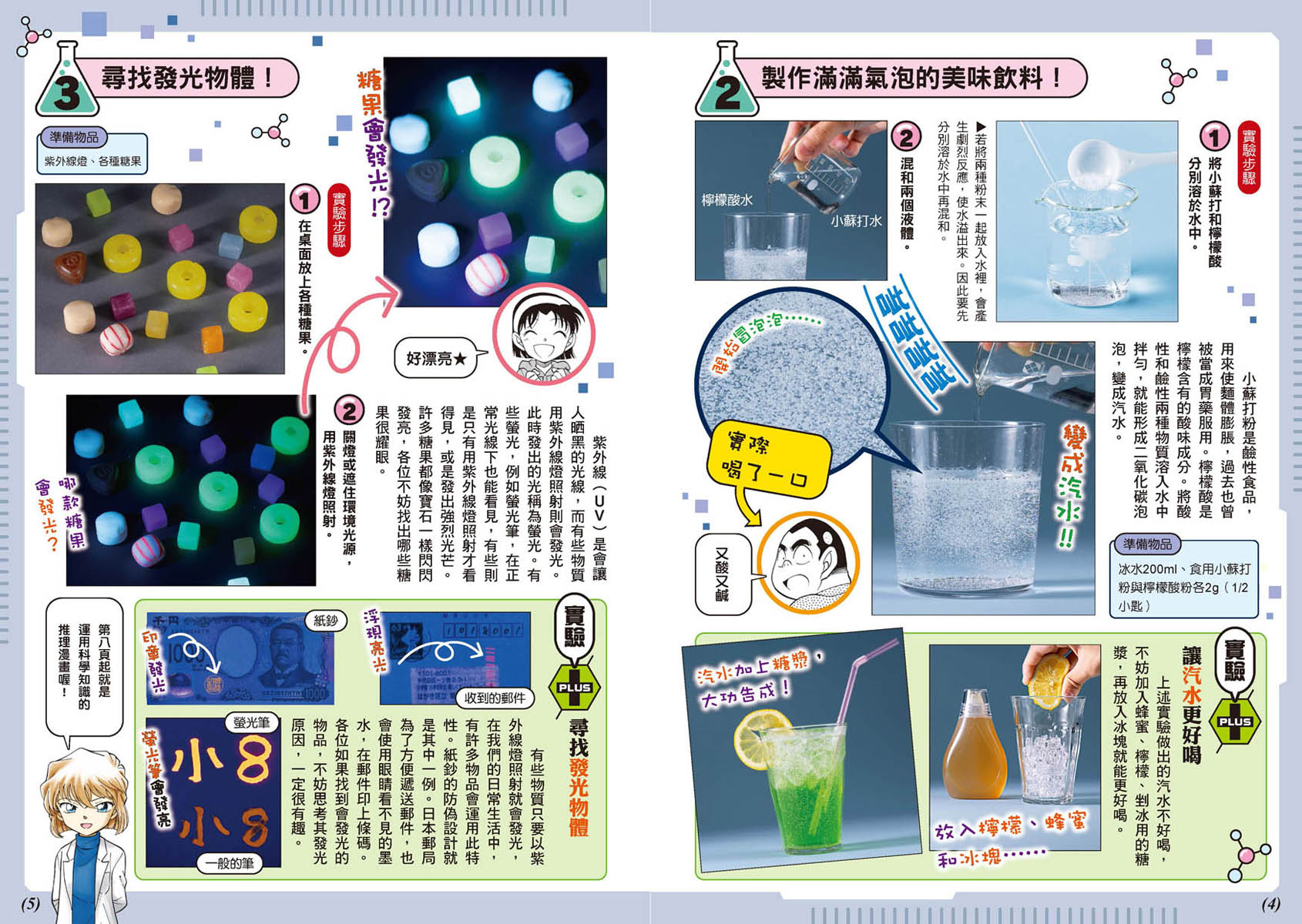 每個單元都搭配「灰原哀的科學實驗室」,用簡單材料重現故事中的關鍵現象。孩子能動手實驗、觀察變化,在過程中體會科學的思考步驟,從發現到驗證都充滿樂趣。