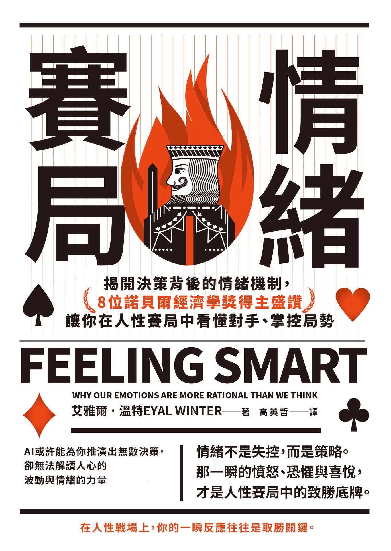 「《情緒賽局》讓社會性內容回歸社會科學領域。事實上,賽局理論有其感性的面向,而溫特教授讓我們明白:表達並理解自身(及周圍人)的情緒,如何幫助你成為更優秀的決策者。想要變得更聰明伶俐還是難受痛苦,全看你自己的決定。」