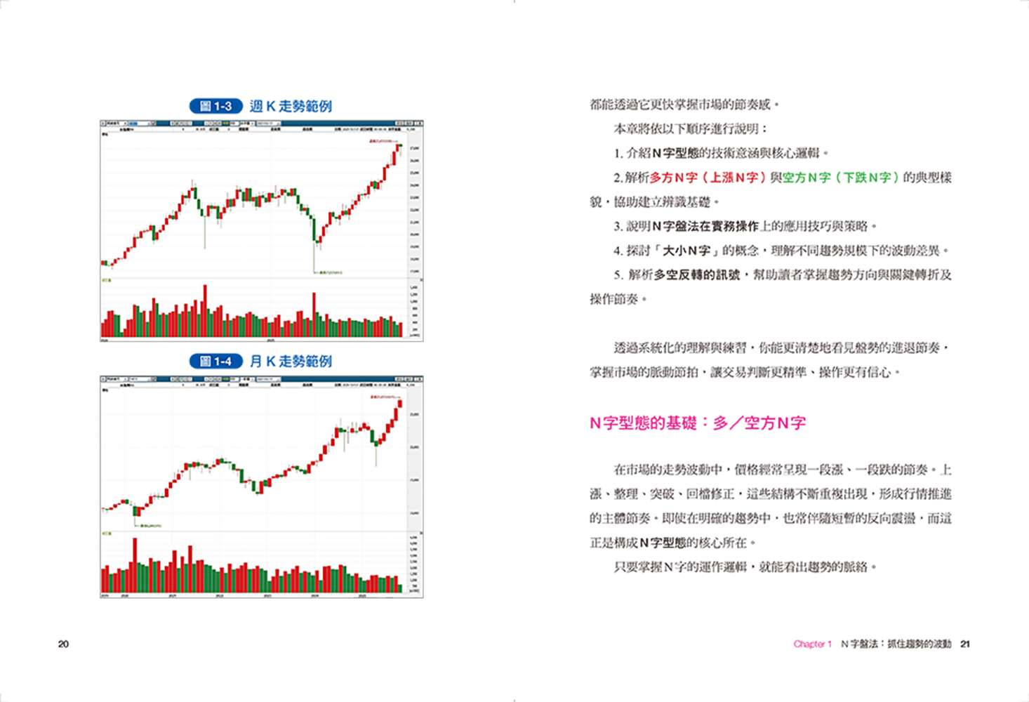 N字型態的基礎:多/空方N字∣主趨勢走漲時的操作策略∣多方N字的實戰操作應用∣主趨勢走跌,操作應以做空為主∣空方N字的實戰操作應用∣空中有多、多中有空——大N字裡的小N字∣小N字波動,未必構成反向趨勢∣反彈高點未被突破,大空方N字續走∣趨勢會反轉,如何用「五階段」抓轉折?