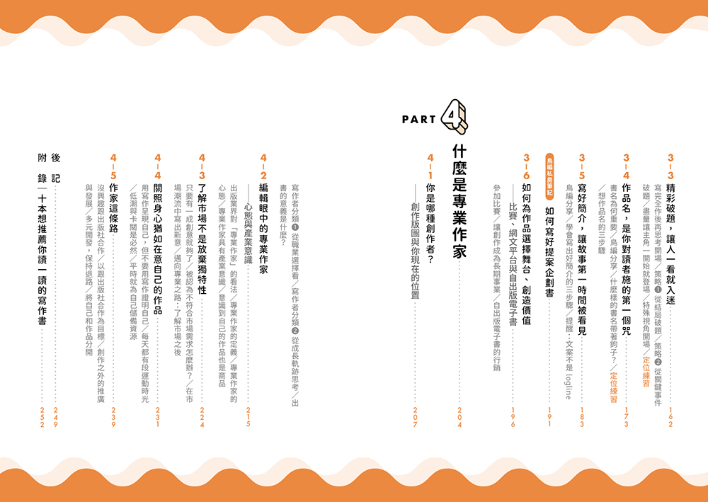 *當你在寫作路上徬徨迷惘 →PART 4提供你深刻的心法與陪伴。
