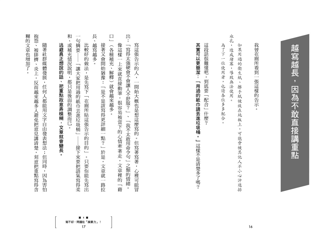 不只如此,第三章會教你一些小小的巧思──只要稍微調整,就能讓讀者的印象產生戲劇性改變,讓你的文章「通風良好」。