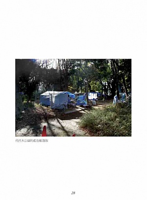 為了統一觀瞻,九○年代東京都政府開始發放藍色帆布供野宿者使用。視覺觀瞻雖然統一了,卻沒有產生相對安全的生活環境,野宿者被攻擊的事件仍層出不窮。市村說,政府會刻意強化他們的不良形象,造成民眾對野宿者的負面觀感,種下暴力的種子。