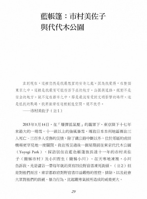 日本左翼評論家柄谷行人(Kojin Karatani)指出,三島由紀夫(Mishima Yukio)的切腹自殺,象徵著昭和時代的結束,也代表日本國族主義的幻象,隨著戰敗而成為永久的幽魂。然而,歷史似乎重現,今天管控日本的右翼政權,意圖再次召喚國族主義幽魂進入資本主義的軀體,昭和年代的戰爭難民也幻化成為新自由主義時代下的經濟難民。野宿者在九○年代匯聚於各大城市,某方面便浮現了歷史反覆的訊息。